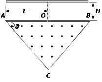 1、计算题 如图所示,在一底边长为2L,θ=45°的等腰三角形区域内(O为底边中点)有垂直纸面向外的匀强磁场. 现有一质量为m,电量为q的带正电粒子从静止开始经过电势差为U的电场加速后,从O点垂直于AB进入磁场,不计重力与空气阻力的影响.