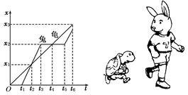 4、选择题 小李讲了一个龟兔赛跑的故事,按照小李讲的故事情节,兔子和乌龟的位移图象如图8所示,由图可知? ( )