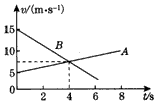 4、选择题 A、B两个物体在同一直线上做匀变速直线运动,它们的速度图象如图所示。则