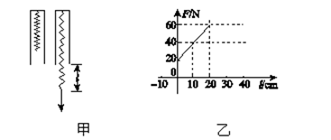 1、实验题 (4分)某同学在研究性学习中,利用所学的知识解决了如下问题:一轻质弹簧竖直悬挂于某一深度为h=30.0cm且开口向下的小筒中(没有外力作用时弹簧的下端位于筒内,测力计的挂钩可以同弹簧的下端接触),如图甲所示,若本实验的长度测量工具只能测量露出筒外弹簧的长度l,现要测出弹簧的原长l0和弹簧的劲度系数,该同学通过改变l而测出对应的弹力F,作出F-l图象如图乙所示,则弹簧的劲度系数为k=________N/m,弹簧的原长l0=_________cm
