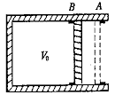 4、计算题 水平放置的气缸内壁光滑,活塞厚度不计,在A、B两处设有限制装置,使活塞只能在A、B之间运动,B左边气缸的容积为V0,A、B之间的容积为0.1V0。开始时活塞在B处,缸内气体的压强为0.9P0(P0为大气压强),温度为297K,现缓慢加热缸内气体,当气体的温度升高到多高时,活塞恰好到达A处?