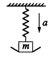 1、计算题 如图所示,在劲度系数为k的弹簧下端挂一质量为m的物体,物体下有一托盘,用托盘托着物体使弹簧恰好处于原长,然后使托盘以加速度a竖直向下做匀速直线运动(a<g),试求托盘向下运动多长时间能与物体脱离?