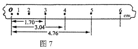 (2)正确使用打点计时器,打出的某一条纸带如图7所示,O是纸带静止时打的点,1、2、3、4、5、6是依次打的6个点,已知电源频率是50 Hz,利用图中给出的数据可求出打点“4”时的速度