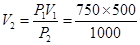 ②P1=P0="750mmHg" ?(1分) V1=500mL? P2=1000mmHg?(1分)