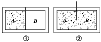 4、选择题 用隔板将一绝热容器隔成A和B两部分,A中盛有一定质量的理想气体,B为真空(如图①),现把隔板抽去,A中的气体自动充满整个容器(如图②),这个过程称为气体的自由膨胀,下列说法正确的是( ? )