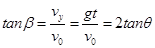 本题解析:因为小球落到了斜面上,所以小球的位移与水平方向的夹角与斜面的倾角相同,故有: