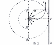 2、计算题  (18分)“太空粒子探测器”是由加速、偏转和收集三部分组成,其原理可简化如下:如图1所示,辐射状的加速电场区域边界为两个同心平行半圆弧面,圆心为O,外圆弧面AB的半径为L,电势为φ1,内圆弧面CD的半径为 ,电势为φ2。足够长的收集板MN平行边界ACDB,O到MN板的距离OP=L。假设太空中漂浮着质量为m,电量为q的带正电粒子,它们能均匀地吸附到AB圆弧面上,并被加速电场从静止开始加速,不计粒子间的相互作用和其它星球对粒子引力的影响。