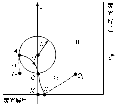轴正方向射入区域Ⅰ,最终打在荧光屏甲上,出现亮点