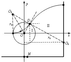 轴负方向进入区域Ⅱ的磁场。如图所示,圆周运动的圆心是