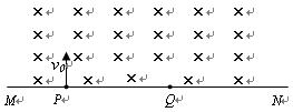 3、计算题 (16分)如图所示,NM的上侧有匀强磁场,磁场方向垂直于纸面向里,磁感应强度的大小为B。一带负电的粒子(不计重力)从P处以垂直于MN的初速度