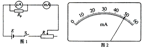 4、实验题 一毫安表头mA满偏电流为9.90 mA,内阻约为300 Ω。要求将此毫安表头改装成量程为1 A的电流表,其电路原理如图所示。图中,A是量程为2 A的标准电流表,R0为电阻箱,R为滑动变阻器,S为开关,E为电源。