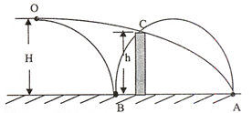 2、计算题  一位网球运动员以拍击球,使网球沿水平方向飞出。第一只球落在自己一方场地上后,弹跳起来,刚好擦网而过,落在对方场地的A点处,如图所示。第二只球直接擦网而过,也落在A点处。设球与地面的碰撞过程没有能量损失,且运动过程不计空气阻力,试问: