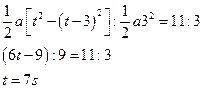 5、计算题 某人在冰面上滑冰做匀减速运动,最终减速到零。已知最初3s内和最后3s的平均速度之比是11:3,求此人从开始减速到在冰面上停止所经历的时间。