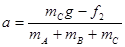 2、选择题  如图所示,物块A、B叠放在水平桌面上,装砂的水桶C通过细线牵引A、B一直在水平桌面上向右加速运动,设A、B间的摩擦力为f1,B与桌面间的摩擦力为f2,若增大C桶内砂的质量,而A、B仍一起向右运动,则摩擦力f1和f2的大小关系是( ?)