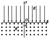 2、简答题 如图所示,在x轴上方存在着沿y轴负方向的匀强电场,电场强度为E,在x轴下方有一垂直纸面向外的匀强磁场,磁感应强度为B。现在坐标原点O处有一正离子源,沿y轴负方向发射比荷均为c的正离子。由于正离子的初速度不同,它们速度第一次为零时的位置不同,所需时间也不一样。