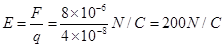 3、填空题 (6分).真空中有一电场,在电场中的P点放一电荷量为4×10-8 C的试探电荷,它受到的电场力为8×10-6N,则P点的场强为 ??N/C,若取走试探电荷,则P点的场强为??N/C 。?