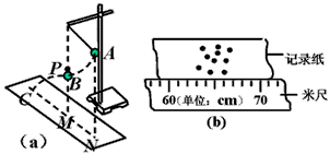 。直接测量摆球到达B点的速度v比较困难。现让小球在B点处脱离悬线做平抛运动,利用平抛的特性来间接地测出v。如图(a)中,悬点正下方P点处放有水平放置炽热的电热丝,当悬线摆至电热丝处时能轻易被烧断,小球由于惯性向前飞出作平抛运动。在地面放上白纸,上面覆盖着复写纸,当小球落在复写纸上时,会在下面白纸上留下痕迹。用重锤线确定出A、B点的投影点N、M。重复实验10次(小球每一次都从同一点由静止释放),球的落点痕迹如图(b)所示,图中米尺水平放置,零刻度线与M点对齐。用米尺量出AN的高度h1、BM的高度h2,算出A、B两点的竖直距离,再量出M、C之间的距离x,即可验证机械能守恒定律。已知重力加速度为g,小球的质量为m。