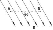 1、计算题 如图所示,在匀强电场中,有A、B两点,它们间距为2cm,两点的连线与场强方向成60°角.将一个电荷量为-1×10-5C的电荷由A移到B,其电势能增加了0.1J.则: