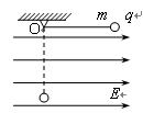 3、计算题  (15分)如图所示,一个质量为m=1.2×10-3kg的小球带电荷量为q=3.0×10-5C的正电,用长度L=1.0m的细线悬挂于固定点O上,此装置置于水平向右的匀强电场中,场强的大小E=3.0×102N/C,现将带电小球拉至O点右侧,使悬线伸直并保持水平,然后由静止释放小球。(g取10m/s2)