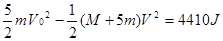 本题解析:①对子弹和沙袋构成的系统动量守恒, 5mV0=(M+5m)V,所以,V=