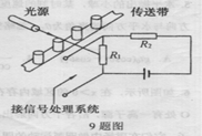 3、选择题 图为光敏电阻自动计数器的示意图,其中R1为光敏电阻,R2为定