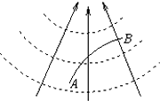 1、选择题 如图所示,带箭头的直线表示某电场的电场线,虚线表示等势线,一个带负电的粒子以一定初速度进入电场,由A运动到B(轨迹为图中AB实曲线所示).设粒子经过A、B两点时的加速度和动能分别用aA、aB、EkA、EkB表示,则(不计粒子重力)( )