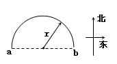4、选择题  某质点沿半径为r的圆孤如图所示,由a点运动到b点,则它通过的位移和路程分别是(   )