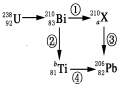 3、选择题 92U放射性衰变有多种途径,其中一种途径是先衰变成83Bi,而83Bi可以经一次衰变变成aX(X代表某种元素),也可以经一次衰变变成81Ti,aX和81Ti最后都衰变变成82Pb,衰变路径如图所示,则可知图中(? )