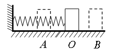 5、选择题 如图所示,弹簧左端固定,右端伸长到O点并系住一小滑块(可看做质点)。先将弹簧压缩,使滑块达A点,然后由静止释放,滑块滑到B点时速度刚好为零,滑块与地面间摩擦力恒定,则( )