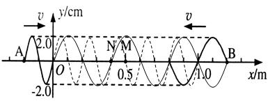 A波如图中的虚线所示,B波如图中的实线所示,所以,M点位移为2cm,N点位移为零,