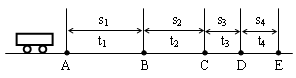 5、选择题 如图所示,小车在平直路面上行驶,依次通过A、B、C、D、E等位置,下列最接近小车通过位置E时的速度是( )