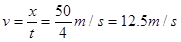汽车总位移是50m,?总时间为4s,所以 全程的平均速度为