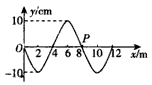 3、选择题 一列简谐横波在x轴上传播。t=0 s时,x轴上0至12 m区域内的波形图象如图所示(x=8 m处的质点P恰好位于平衡位置),t=1.2 s时,其间恰好第三次重复出现图示的波形,根据以上的信息,可以确定