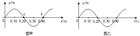 4、选择题 一列简谐横波沿x轴负方向传播,a、b为波上的两个质点,某时刻的波形图如图甲所示,从此时刻开始计时,图乙是a、b两个质点中某一质点的振动图像,下列判断正确的是