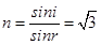 (3)当入射光线与界面间的夹角为30°时,入射角i=60°,折射光线与反射光线恰好垂直,则折射角r=90°-60°=30°,折射率为