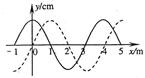 (2)(4分)图示实线是简谐横波在t1=0时刻的波形图象,虚线是t2=0.2s时刻的波形图象,试回答:若波沿x 轴正方向传播,则它的最大周期为?s;若波的传播速度为55m/s,则波的传播方向是沿x轴?方向(填“正”或“负”)。