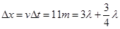 (2)在0.14s内,x=4m的质点只振动了3/4个周期