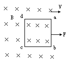 5、简答题 用水平力F将矩形线框abcd水平向右以速度V匀速拉出磁场,开始时ab边和磁场边缘对齐,如下图所示,设匀强磁场的磁感强度为B,方向垂直纸面向里,试针对这一过程,用能量转化守恒定律导出法拉第电磁感应定律.