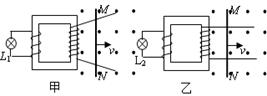 1、选择题 如图所示,在图甲中是两根不平行的导轨,图乙中是两根平行的导轨,其它物理条件都相同,当金属棒MN在导轨上向右匀速运动时,在棒的运动过程中,将观察到