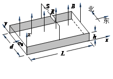 5、计算题 洋流又叫海流,指大洋表层海水常年大规模的沿一定方向较为稳定的流动。因为海水中含有大量的正、负离子,这些离子随海流做定向运动,如果有足够强的磁场能使海流中的正、负离子发生偏转,便可用来发电。图为利用海流发电的磁流体发电机原理示意图,其中的发电管道是长为L、宽为d、高为h的矩形水平管道。发电管道的上、下两面是绝缘板,南、北两侧面M、N是电阻可忽略的导体板。两导体板与开关S和定值电阻R相连。整个管道置于方向竖直向上、磁感应强度大小为B的匀强磁场中。为了简化问题,可以认为:开关闭合前后,海水在发电管道内以恒定速率v朝正东方向流动,发电管道相当于电源,M、N两端相当于电源的正、负极,发电管道内海水的电阻为r(可视为电源内阻)。管道内海水所受的摩擦阻力保持不变,大小为f。不计地磁场的影响。