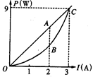 2、填空题 如图所示,直线AOC为某一电源的总功率P总随电流i变化的图线,抛物线OBC为同一直流电源内部热功率Pr随电流I变化的图象.若A、B对应的横坐标为2A,那么线段AB表示的功率为____________及I=2A时对应的外电阻是_______________.