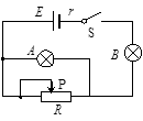 5、选择题 如图所示,开关S闭合后,A灯与B灯均发光,A、B两灯电阻均大于电源的内阻。当滑动变阻器的滑片P向左滑动时,以下说法正确的是
