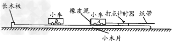 1、实验题 某同学设计了一个用打点计时器探究碰撞过程中不变量的实验:在小车A的前端粘有橡皮泥,推动小车A使之做匀速运动.然后与原来静止在前方的小车B相碰并粘合成一体,继续做匀速运动,他设计的具体装置如图所示.在小车A后连着纸带,电磁打点计时器电源频率为50Hz,长木板下垫着小木片用以平衡摩擦力.?