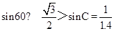 光垂直于AB面射入时,光的传播方向不变,射到斜边时,入射角为60°,则