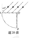 的玻璃柱体,其横截而是圆心角为90o,、半径为R的扇形OAB、一束平行光平行于横截面,以45o入射角射到OA上,OB不透光,若考虑首次入射到圆弧