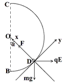 (3)由于小球在D点时速度最大且电场力与重力的合力恰好沿半径方向,故小球在的点对圆轨道的压力最大,设此压力大小为F,由牛顿第三定律可知小球在D点受到的轨道弹力大小也为F,在D点对小球进行受力分析,并建立如图所示坐标系,由牛顿第二定律:
