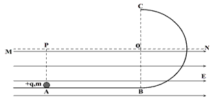 3、计算题 如图所示,光滑水平轨道与半径为R的光滑竖直半圆轨道在B点平滑连接。在过圆心O的水平界面MN的下方分布有水平向右的匀强电场。现有一质量为m,电量为+q的小球从水平轨道上A点由静止释放,小球运动到C点离开圆轨道后,经界面MN上的P点进入电场(P点恰好在A点的正上方,如图。小球可视为质点,小球运动到C点之前电量保持不变,经过C点后电量立即变为零)。已知A、B间距离为2R,重力加速度为g。在上述运动过程中,求: