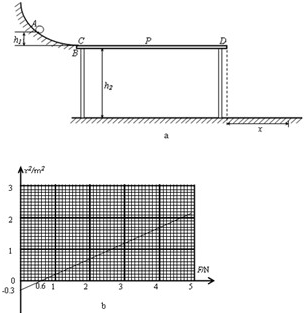 4、简答题 如图a所示,水平桌面的左端固定一个竖直放置的光滑圆弧轨道,圆弧轨道底端与水平桌面相切C点,桌面CD长L=1m,高h2=0.5m,有质量为m(m为末知)的小物块从圆弧上A点由静止释放,A点距桌面的高度h1=0.2m,小物块经过圆弧轨道底端滑到桌面CD上,在桌面CD上运动时始终受到一个水平向右的恒力F作用.然后从D点飞出做平抛运动,最后落到水平地面上.设小物块从D点飞落到的水平地面上的水平距离为x,如图b是x2-F的图象,取重力加速度g=10m/s2.