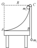 1、简答题 如图所示,半径为R的四分之一圆弧形支架竖直放置,圆弧边缘C处有一小定滑轮,绳子不可伸长,不计一切摩擦,开始时,m1、m2两球静止,且m1>m2,试求: