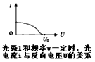5、选择题 研究光电效应规律的实验装置如图所示,以频率为v的光照射光电管阴极K时,有光电子产生。由于光电管K、A间加的是反向电压,光电子从阴极K发射后将向阳极A作减速运动。光电流I由图中电流计G测出,反向电压U由电压表V测出,当电流计的示数恰好为零时,电压表的示数称为反向截止电压U0。在下列表示光电效应实验规律的图象中,错误的是